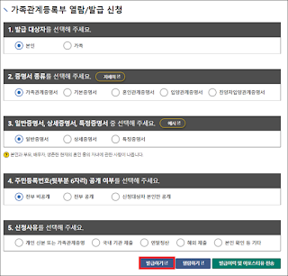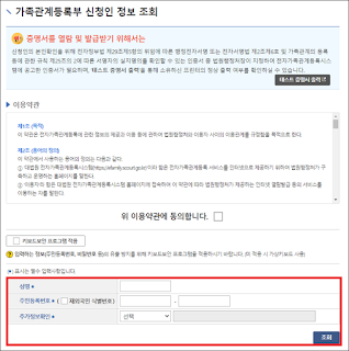가족관계등록부는 신청자 정보를 조회한 후에 발행할 수 있다.