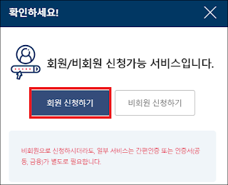 회원 비회원 신청가능 서비스라고 하니 나는 회원신청을 클릭한다.