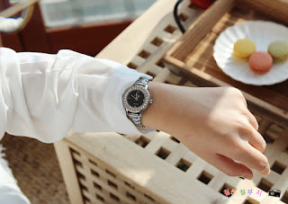 스와로브스키 스톤식 이목이 돋보이는 메탈 시계입니다베젤을 따라 수놓아 한눈에 보기에도 화려하며 시계만으로도 돋보입니다. 단정한 옷을 입는 경우가 많은데요.화려한 시계로 눈에 띌 수 있어서 좋을 것 같네요.