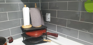 쿡탑 바로 옆공간 입니다.예전에는 행주걸이와 수세미 키친타올을 세워두었어요.