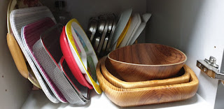 예전에는 접시꽂이를 이용해서 쟁반을 보관하고 있었는데 아이들 간식, 과일 담는 용도의 뚱뚱한 목기는 사이즈가 맞지 않아 항상 싱크대 안에서 전쟁을…