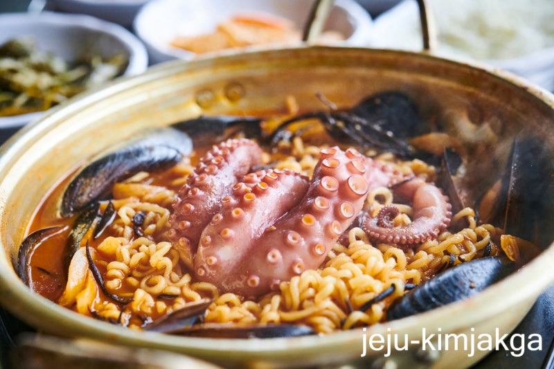 드디어 나온 음식! 배가 고팠는데 생각보다 빨리 나와서 다행이에요.먼저 먹어본 음식은 제주곶 낙지라면입니다.맛있는 냄새가 퍼져서 코끝을 자극하거든요.